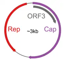 - An ORF3 protein of unknown function. ORF3 is entirely encoded within the Cap coding region in a different reading frame.