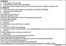 The act of reflection is seen as a way of promoting the development of autonomous, qualified and self-directed professionals, as well as a way of developing more effective healthcare teams.[66] Engaging in reflective practice is associated with improved quality of care, stimulating personal and professional growth and closing the gap between theory and practice.[67] Medical practitioners can combine reflective practice with checklists (when appropriate) to reduce diagnostic error.[68]