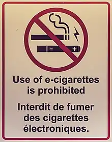 Regulation of electronic cigarettes varies across countries and states, ranging from no regulation to banning them entirely.[1] As of 2015, around two thirds of major nations have regulated e-cigarettes in some way.[2]