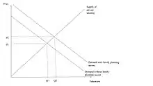 Having children produces a quality-quantity trade-off: parents need to decide how many children to have and how much to invest in the future of each child.[56] The increasing marginal cost of quality (child outcome) with respect to quantity (number of children) creates a trade-off between quantity and quality.[57] The quantity-quality trade-off means that policies that raise benefits of investing in child quality will generate higher levels of human capital, and policies that lower the costs of having children may have unintended adverse consequences on long-run economic growth. When deciding how many children, parents are influenced by their income level, perceived return to human capital investment, and cultural norms related to gender equality. Controlling birth rates allows families to raise the future earnings power of the next generation. Many empirical studies have tested the quantity-quality trade-off and either observed a negative correlation between family size and child quality or did not find a correlation.[57] Most studies treat family size as an exogenous variable because parents choose childbearing and child outcome and therefore cannot establish causality. They are both influenced by typically non-observable parental preferences and household characteristics, but some studies observe proxy variables such as investment in education.