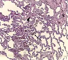 Respiratory bronchiolitis is a lung disease associated with tobacco smoking.[1] In pathology, it is defined by the presence of "smoker's macrophages".[1] When manifesting significant clinical symptoms it is referred to as respiratory bronchiolitis interstitial lung disease (RB-ILD).[1]