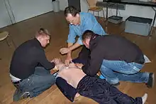 Resusci Anne, also known as Rescue Anne, Resusci Annie, CPR Annie, Resuscitation Annie, Little Annie, or CPR Doll is a model of medical simulator used for teaching both emergency workers and members of the general public. Resusci Anne was developed by the Norwegian toy maker Åsmund S. Lærdal and the Austrian-Czech physician Peter Safar and American physician James Elam,[1][2][3] and is produced by the company Laerdal Medical.