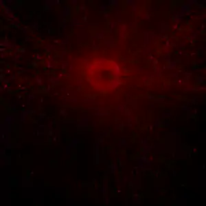 Retinal ganglion cells (RGCs) are born between embryonic day 11 and post-natal day zero in the mouse and between week 5 and week 18 in utero in human development.[10][11][12] In mammals, RGCs are typically added at the beginning in the dorsal central aspect of the optic cup, or eye primordium. Then RC growth sweeps out ventrally and peripherally from there in a wave-like pattern.[13] This process depends on a host of factors, ranging from signaling factors like FGF3 and FGF8 to proper inhibition of the Notch signaling pathway. Most importantly, the bHLH (basic helix-loop-helix)-domain containing transcription factor Atoh7 and its downstream effectors, such as Brn3b and Isl-1, work to promote RGC survival and differentiation.[10] The "differentiation wave" that drives RGC development across the retina is also regulated in particular of the bHLH factors Neurog2 and Ascl1 and FGF/Shh signaling, deriving from the periphery.[10][13][14]
