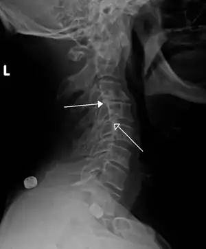 A retrolisthesis is a posterior displacement of one vertebral body with respect to the subjacent vertebra to a degree less than a luxation (dislocation). Retrolistheses are most easily diagnosed on lateral x-ray views of the spine. Views where care has been taken to expose for a true lateral view without any rotation offer the best diagnostic quality.