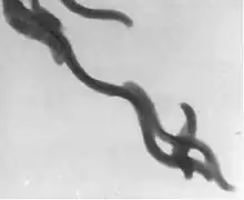 Magnetospirillum magnetotacticum with magnetosome chains faintly visible