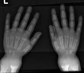 - El-Sobky TA, Shawky RM, Sakr HM, Elsayed SM, Elsayed NS, Ragheb SG, Gamal R (15 November 2017). "A systematized approach to radiographic assessment of commonly seen genetic bone diseases in children: A pictorial review". J Musculoskelet Surg Res. 1 (2): 25. doi:10.4103/jmsr.jmsr_28_17. S2CID 79825711.