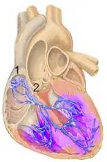 | An illustration of a right bundle branch block located in intraventricular septum | |