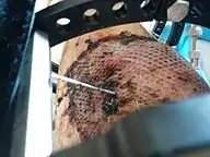 Gastrocnemius rotational skin flap for injury to anterior aspect of lower leg 10 days after surgery