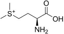S-Methylmethionine (SMM) is a derivative of methionine with the chemical formula (CH3)2S+CH2CH2CH(NH3+)CO2−. This cation is a naturally-occurring intermediate in many biosynthetic pathways owing to the sulfonium functional group. It is biosynthesized from L-methionine and S-adenosylmethionine by the enzyme methionine S-methyltransferase. S-methylmethionine is particularly abundant in plants, being more abundant than methionine.[2]