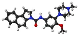 S32212 is a drug which is under preclinical investigation as a potential antidepressant medicine.[1][2] It behaves as a selective, combined 5-HT2C receptor inverse agonist and α2-adrenergic receptor antagonist (at all three subtypes—α2A, α2B, and α2C) with additional 5-HT2A and, to a lesser extent, 5-HT2B receptor antagonistic properties, and lacks any apparent affinity for the monoamine reuptake transporters or for the α1-adrenergic, H1, or mACh receptors.[1] This profile of activity is compatible with the definition of a noradrenergic and specific serotonergic antidepressant (NaSSA), and as such, S32212 could in turn be classified as a NaSSA if it reaches the market.