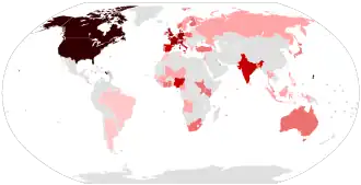 | World (71 countries) | Total: 7,129 | Total as of 27 August 2021 |
