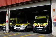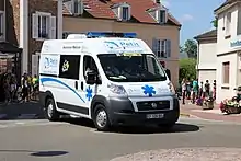 Although they also transport casualties and are, in any practical sense, ambulances, their vehicles are instead called a VSAV (véhicule de secours et d'assistance aux victimes – rescue and casualty assistance vehicle).[7] Volunteer-staffed ambulances may be called a VPS (véhicules de premiers secours – first aid vehicle). The VSAV and VPS are considered to be means of bringing rescue workers and equipment onsite, with the evacuation of patients being only the logical result of the response, but not the primary duty of these response resources.