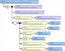 Pharmaceutical and biologic products are modeled using constructs of active ingredient, presentation strength, and basis of strength. Since 2018, harmonization of SNOMED CT drug content with IDMP standard is an editorial goal. The following types of entities are present: