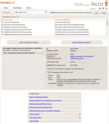 SNOMED CT or SNOMED Clinical Terms is a systematically organized computer-processable collection of medical terms providing codes, terms, synonyms and definitions used in clinical documentation and reporting. SNOMED CT is considered to be the most comprehensive, multilingual clinical healthcare terminology in the world.[1][2] The primary purpose of SNOMED CT is to encode the meanings that are used in health information and to support the effective clinical recording of data with the aim of improving patient care. SNOMED CT provides the core general terminology for electronic health records. SNOMED CT comprehensive coverage includes: clinical findings, symptoms, diagnoses, procedures, body structures, organisms and other etiologies, substances, pharmaceuticals, devices and specimens.