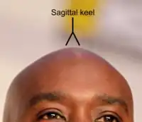In the human skull, a sagittal keel, or sagittal torus, is a thickening of part or all of the midline of the frontal bone, or parietal bones where they meet along the sagittal suture, or on both bones. Sagittal keels differ from sagittal crests, which are found in some earlier hominins (notably the genus Paranthropus) and in a range of other mammals. While a proper crest functions in anchoring the muscles of mastication to the cranium, the keel is lower and rounded in cross-section, and the jaw muscles do not attach to it.