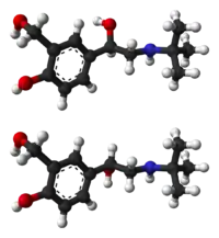 ![]() Salbutamol (top), (R)-(−)-salbutamol (center) and (S)-(+)-salbutamol (bottom) | |