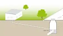 Schematic of a conventional sanitary sewer to convey blackwater and greywater from households to a centralized sewage treatment facility.[3]