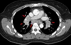 | Differential diagnosis | Tuberculosis, lymphoma, infectious mononucleosis, pulmonary eosinophilia[7] |