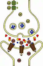 Sarin is a potent inhibitor of acetylcholinesterase,[10] an enzyme that degrades the neurotransmitter acetylcholine after it is released into the synaptic cleft. In vertebrates, acetylcholine is the neurotransmitter used at the neuromuscular junction, where signals are transmitted between neurons from the central nervous system to muscle fibres. Normally, acetylcholine is released from the neuron to stimulate the muscle, after which it is degraded by acetylcholinesterase, allowing the muscle to relax. A build-up of acetylcholine in the synaptic cleft, due to the inhibition of acetylcholinesterase, means the neurotransmitter continues to act on the muscle fibre, so that any nerve impulses are effectively continually transmitted.