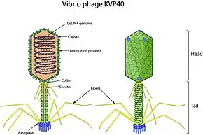 Genomes are linear.[3] All three species have been fully sequenced. They range between 244k and 248k nucleotides, with 381 to 405 proteins. The complete genomes are available from National Center for Biotechnology Information (NCBI), along with the complete genome for Vibrio phage VH7D, an unclassified virus strain.[5]