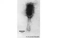 | Electron micrograph of a virion of species Schizotequattrovirus | |