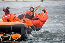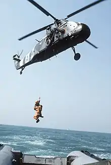 Maritime search and rescue is carried out at sea to save sailors and passengers in distress, or the survivors of downed aircraft. The type of agency which carries out maritime search and rescue varies by country; it may variously be the coast guard, navy or voluntary organisations. When a distressed or missing vessel is located, these organisations deploy helicopters, rescue vessels or any other appropriate vessel to return them to land. In some cases, the agencies may carry out an air-sea rescue (ASR). This refers to the combined use of aircraft (such as flying boats, floatplanes, amphibious helicopters and non-amphibious helicopters equipped with hoists) and surface vessels.[13] The International Convention on Maritime Search and Rescue (SAR Convention) is the legal framework that applies to international maritime and air-sea rescue.[14]