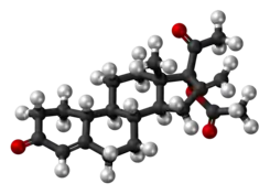 SGA, also known as 16-methylene-17α-acetoxy-19-norprogesterone or as 16-methylene-17α-acetoxy-19-norpregn-4-ene-3,20-dione, is a synthetic norpregnane steroid and a derivative of progesterone. It is a combined derivative of 17α-hydroxyprogesterone and 19-norprogesterone, or a derivative of gestronol (17α-hydroxy-19-norprogesterone). The medication is the C17α acetate ester of segesterone, which, in contrast, was never marketed.[19] Other 19-norprogesterone derivatives include demegestone, gestonorone caproate (norhydroxyprogesterone caproate), nomegestrol acetate, promegestone, and trimegestone.[3] SGA is a derivative of 16-methylene-17α-hydroxyprogesterone acetate, and is the analogue of methenmadinone acetate without the C19 methyl group or the C6 double bond.[20] A derivative of SGA with even greater progestogenic potency in comparison to SGA is 18-methylsegesterone acetate.[21][22][23]