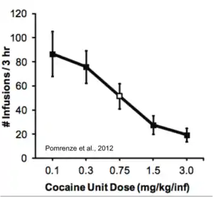 Both humans and animals will adjust the rate and number of drug infusions to maintain stable rewarding blood levels of drugs, like cocaine. A dilute dose of cocaine will be administered intravenously at a faster rate than a concentrated dose of cocaine.[13]