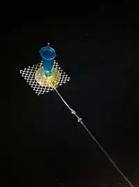 Animal self-administration experiments are typically performed in standard operant conditioning chambers adapted for the catheters used to deliver a drug intravenously. The catheter is secured to the animal by a harness or backplate and is tethered to a protective leash that extends upward through a hole in the top of a chamber, where it attaches to a rotating swivel on a mechanical arm that allows the subject to move around freely. The chamber houses two levers: one whose depression results in the delivery of a drug, the other whose depression does nothing. Activity on these levers can be used to measure drug administration (via activity at the drug-inducing lever) as well as changes in nonspecific behavior that reflect short- and long-term effects of the drug (via activity at the non-inducing lever). The sterile intravenous catheter used to deliver the drug into the bloodstream of the subject is typically composed of flexible plastic, silastic tubing, and nylon mesh placed subcutaneously.[19] It is attached to a mechanical pump that can be calibrated to deliver a specific amount of drug upon depression of one of the levers in the chamber. Other chamber modifications are required if the drug is to be delivered orally or via inhalation, such as liquid containers or an aerosol distribution mechanism.[20][21]