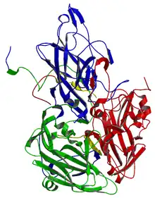 Senecavirus uses the anthrax toxin receptor 1 (ANTXR1) protein as a receptor.[19] A high-resolution structure of senecavirus with this receptor has been published.[20]