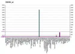 The serum amyloid P component (SAP) is the identical serum form of the amyloid P component (AP), a 25 kDa pentameric protein first identified as the pentagonal constituent of in vivo pathological deposits called "amyloid".[5] APCS is its human gene.[6]