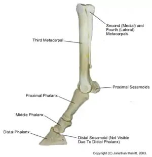 In horses, sesamoiditis is generally caused by excess stress on the fetlock joint. Conformation that promotes sesamoiditis include long pasterns, or horses with long toes and low heels.