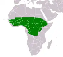 The shea tree grows naturally in the wild in the dry savannah belt of West and South from Senegal in the west to Sudan and South Sudan in the east, and onto the foothills of the Ethiopian highlands. It occurs in 19 countries across the African continent, namely Benin, Burkina Faso, Cameroon, Central African Republic, Chad, Ethiopia, Ghana, Guinea Bissau, Ivory Coast, Mali, Niger, Nigeria, Senegal, Sierra Leone, South Sudan, Sudan, Togo, Uganda, Democratic Republic of the Congo, and Guinea. The habitat area in total spans as wide as 5,000 square kilometres.[8]