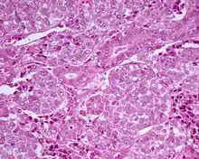 A hematoxylin and eosin stained image (intermediate power) of a sialoblastoma.