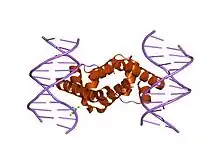 A sigma factor (σ factor or specificity factor) is a protein needed for initiation of transcription in bacteria.[1][2] It is a bacterial transcription initiation factor that enables specific binding of RNA polymerase (RNAP) to gene promoters. It is homologous to archaeal transcription factor B and to eukaryotic factor TFIIB.[3] The specific sigma factor used to initiate transcription of a given gene will vary, depending on the gene and on the environmental signals needed to initiate transcription of that gene. Selection of promoters by RNA polymerase is dependent on the sigma factor that associates with it.[4] They are also found in plant chloroplasts as a part of the bacteria-like plastid-encoded polymerase (PEP).[5]