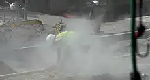 One of the main updates to OSHA's silica standard was the reduction of the permissible exposure limit (PEL) for respirable crystalline silica from 250 to 50 micrograms per cubic meter of air, averaged over an 8-hour shift.[57] The updated standard also shifts the focus of controlling silica exposure from the use of PPE (respirators) to the use of engineering controls (such as using water-integrated tools or vacuum systems) and administrative controls (limiting exposure time per shift). Employers are still required to provide respirators when engineering and administrative controls cannot adequately limit exposure. Additional provisions include limiting worker access to high exposure areas, signage requirements in high exposure areas, the development of a written exposure control plan, medical exams to highly exposed workers (optional for exposed employees), and training for workers on silica risks and how to limit exposures. Some recent studies have found workers who grind granite counters and use water controls to eliminate dust are becoming ill from exposure to dust after water has evaporated the next day.[58] The standard also provides requirements for cleaning up the slurry left behind when water-integrated tools are used as an engineering control.