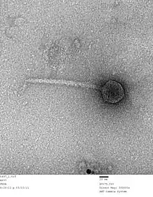Siphoviridae is a family of double-stranded DNA viruses in the order Caudovirales. Bacteria and archaea serve as natural hosts. There are 1,166 species in this family, assigned to 366 genera and 22 subfamilies.[2][3] The characteristic structural features of this family are a nonenveloped head and noncontractile tail.