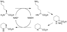 - Gatto GJ, Boyne MT, Kelleher NL, Walsh CT (March 2006). "Biosynthesis of pipecolic acid by RapL, a lysine cyclodeaminase encoded in the rapamycin gene cluster". Journal of the American Chemical Society. 128 (11): 3838–3847. doi:10.1021/ja0587603. PMID 16536560.