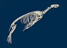 To facilitate the movement of marine mammals in water, the hind legs were either lost altogether, as in the whales and manatees, or united in a single tail fin as in the pinnipeds (seals). In the whale, the cervical vertebrae are typically fused, an adaptation trading flexibility for stability during swimming.[20]