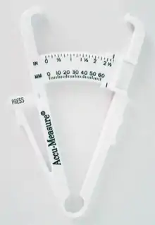 The skinfold estimation methods are based on a skinfold test, also known as a pinch test, whereby a pinch of skin is precisely measured by calipers, also known as a plicometer,[18] at several standardized points on the body to determine the subcutaneous fat layer thickness.[19][20] These measurements are converted to an estimated body fat percentage by an equation. Some formulas require as few as three measurements, others as many as seven. The accuracy of these estimates is more dependent on a person's unique body fat distribution than on the number of sites measured. As well, it is of utmost importance to test in a precise location with a fixed pressure. Although it may not give an accurate reading of real body fat percentage, it is a reliable measure of body composition change over a period of time, provided the test is carried out by the same person with the same technique.