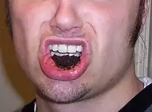 Other chemicals found in tobacco can also cause cancer.[14] These include: A radioactive element (polonium-210) found in tobacco fertilizer.[14] Chemicals formed when tobacco is cured with heat (polynuclear aromatic hydrocarbons—also known as polycyclic aromatic hydrocarbons).[14] Harmful metals (arsenic, beryllium, cadmium, chromium, cobalt, lead, nickel, mercury).[14] Products such as 3-(methylnitrosamino)-proprionitrile, nitrosamines, and nicotine initiate the production of reactive oxygen species in smokeless tobacco, eventually leading to fibroblast, DNA, and RNA damage with carcinogenic effects in the mouth of tobacco consumers.[9] The metabolic activation of nitrosamine in tobacco by cytochrome P450 enzymes may lead to the formation of N-nitrosonornicotine, a major carcinogen, and micronuclei, which are an indicator of genotoxicity. These effects lead to further DNA damage and, eventually, oral cancer.[9] Smokeless tobacco can cause white or gray patches inside the mouth (leukoplakia) that can lead to cancer.[14] The World Health Organization has classified smokeless tobacco products as human carcinogenic compounds, in particular tobacco-specific nitrosamines, which account for 76 to 91% of the total N-nitroso compound (NOC) burden.[9] A 2014 review found there is "a number of ethnically linked smokeless tobacco types that contain areca nut, a Group 1 carcinogen. Use of areca nut-containing smokeless tobacco is known to cause oral cancer, yet despite this, prevalence is increasing in the Western Pacific."[3] N-nitrosonornicotine and ketone are group 1 carcinogens to humans.[20] These two nitrosamines found in smokeless tobacco products are the main agents for the majority of cancers in smokeless tobacco users.[20]