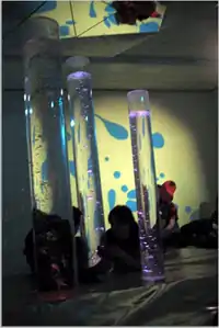 Snoezelen or controlled multisensory environment (MSE) is a therapy for people with autism and other developmental disabilities, dementia or brain injury. It consists of placing the person in a soothing and stimulating environment, called the "Snoezelen room". These rooms are specially designed to deliver stimuli to various senses, using lighting effects, color, sounds, music, scents, etc. The combination of different materials on a wall may be explored using tactile senses, and the floor may be adjusted to stimulate the sense of balance. The person is usually accompanied by an aide or therapist.