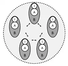 Organisational disease defence — or organisational immunity — refers to patterns of social interactions which could, hypothetically, mitigate disease transmission in a social group.[90] As disease transmission occurs through social interactions, changes in the type and frequency of these interactions are expected to modulate disease spread.[143] Organisational immunity is predicted to have both a constitutive and an induced component. The innate, organisational substructure of social insect colonies may provide constitutional protection of the most valuable colony members, the queens and brood, as disease will be contained within subgroups. Social insect colonies are segregated into worker groups that experience different disease hazards, where the young and reproductive individuals interact minimally with the workers performing the tasks with higher disease risk (e.g. foragers).[88][144] This segregation can arise as a result of the physical properties of the nest[145] or the differences in space usage of the individuals.[146] It can also result from age- or task-biased interactions.[147] Distinct activity patterns between group members (e.g. individuals with relatively higher number of interactions, or high number of interaction partners) has also been hypothesized to influence disease spread.[148] It is further assumed that social insects may further modulate their interaction networks upon disease coming into the colony. However, the organisational immunity hypothesis is currently mainly supported by theoretical models and awaits empirical testing.[90]