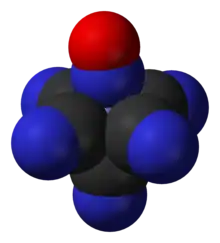 Nitroprusside is a complex anion that features an octahedral iron(II) centre surrounded by five tightly bound cyanide ligands and one linear nitric oxide ligand (Fe-N-O angle = 176.2 °). The anion possesses idealized C4vsymmetry.