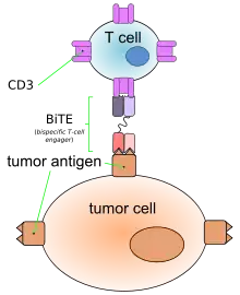 - Helwick C (June 2008). "Novel BiTE antibody mediates contact between T cells and cancer cells". Oncology NEWS International. 17 (6).