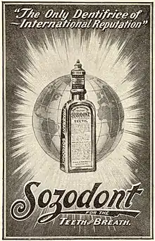 Sozodont was a popular brand of oral hygiene product from the mid-nineteenth century to the early twentieth century.