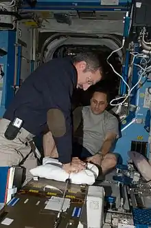 In the interest of creating the possibility of longer duration space flight, NASA has invested in the research and application of preventative space medicine, not only for medically preventable pathologies but trauma as well. Although trauma constitutes more of a life-threatening situation, medically preventable pathologies pose more of a threat to astronauts. "The involved crewmember is endangered because of mission stress and the lack of complete treatment capabilities on board the spacecraft, which could result in the manifestation of more severe symptoms than those usually associated with the same disease in the terrestrial environment. Also, the situation is potentially hazardous for the other crewmembers because the small, closed, ecological system of the spacecraft is conducive to disease transmission. Even if the disease is not transmitted, the safety of the other crewmembers may be jeopardized by the loss of the capabilities of the crewmember who is ill. Such an occurrence will be more serious and potentially hazardous as the durations of crewed missions increase and as operational procedures become more complex. Not only do the health and safety of the crewmembers become critical, but the probability of mission success is lessened if the illness occurs during flight. Aborting a mission to return an ill crewmember before mission goals are completed is costly and potentially dangerous."[83] Treatment of trauma may involve surgery in zero-gravity,[84] which is a challenging proposition given the need for blood sample containment. Diagnosis and monitoring of crew members is a particularly vital need. NASA tested the rHEALTH ONE[85] to advance this capability for on-orbit, travel to Moon and Mars. This capability is mapped to Risk of Adverse Health Outcomes and Decrements in Performance Due to Medical Conditions that occur in Mission, as well as Long Term Health Outcomes Due to Mission Exposures. Without an approach to perform onboard medical monitoring, loss of crew members may jeopardize long duration missions.