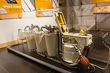 A $23 million next-generation space toilet called the Universal Waste Management System (UWMS) is being developed by NASA for Orion and the International Space Station.[20][21] The UWMS is the first space toilet designed specifically for women as well as men, easing the use of space toilets for women and use for stool and urine at the same time. It is designed to be fully automated, quieter, lighter, more reliable, more hygienic and more compact than previous systems.[20][22] Among its innovations, the UWMS relies on a 3D printing technique to incorporate metals including Inconel, Elgiloy, and titanium that can withstand the acids used to treat urine within the toilet.[22] The UWMS was first delivered to the ISS in October 2020.