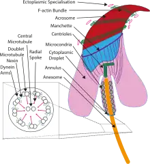 The process of spermiogenesis is traditionally divided into four stages: the Golgi phase, the cap phase, formation of the tail, and the maturation stage.[1]