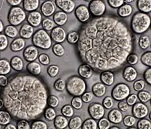 Sphaeroforma arctica, is a unicellular eukaryote with a pivotal position in the tree of life. It was first isolated from the arctic marine amphipod Gammarus setosus.[2][1] Like other Ichthyosporeans such as Creolimax and Abeoforma, Sphaeroforma arctica are spherical cells characterized with their capacity to grow into multi-nucleated coenocytes (multi-nucleates cell). However, a unique feature of S. arctica, is that no obvious budding, hyphal, amoeboid, sporal or flagellated growth stages have been observed in laboratory growth conditions.